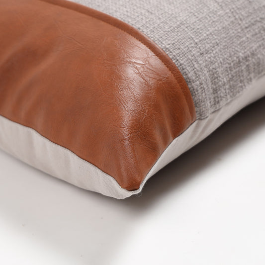 Hand Stitched Velvet & Leather Colorblock Lumbar Cushion Cover