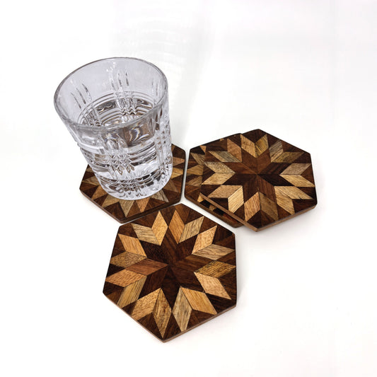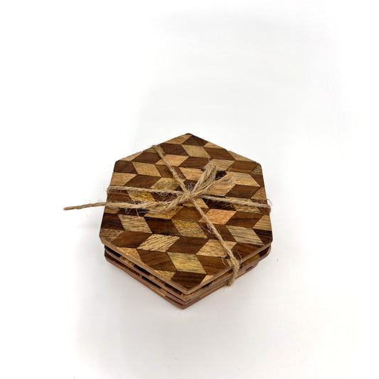 Submit InquiryGeometric Handmade Hexagonal Wooden Coasters (set of 4)