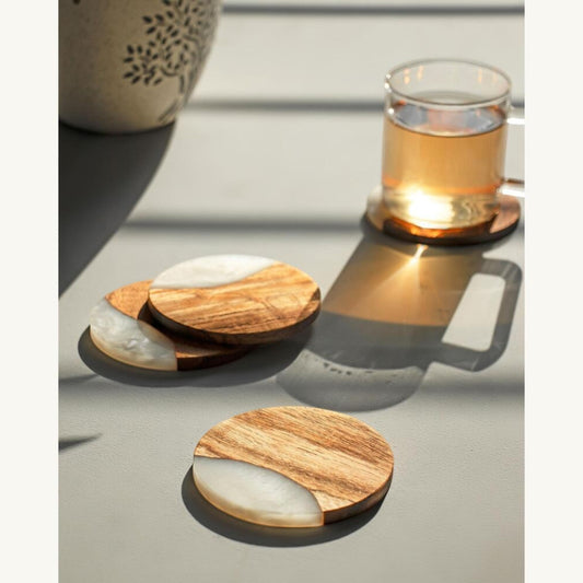 Submit InquiryHand Cut Mango Wood & White Marble Round Coasters (set of 4)