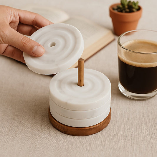 Natural Marble Coasters with Soft Veining (Set of 4)
