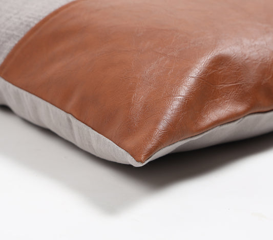 Submit InquiryHand Stitched Cotton & Leather Colorblock Cushion Cover