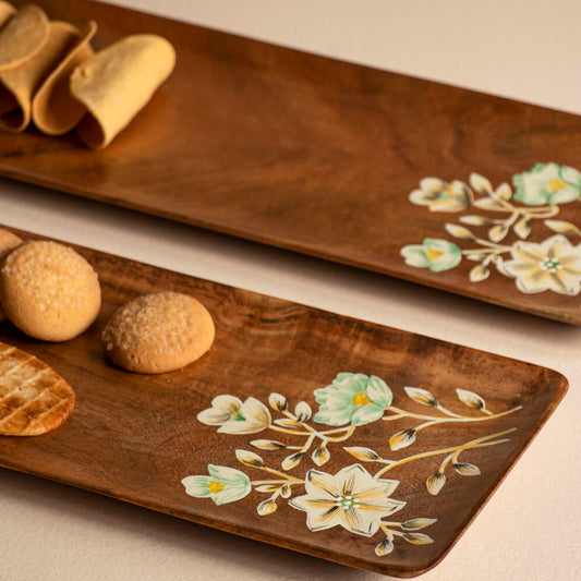 Hand Painted Wooden Floral Platters (Set of 2)
