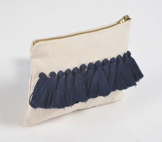 Submit InquiryHandmade Navy Tasseled Quilted Travel Pouch