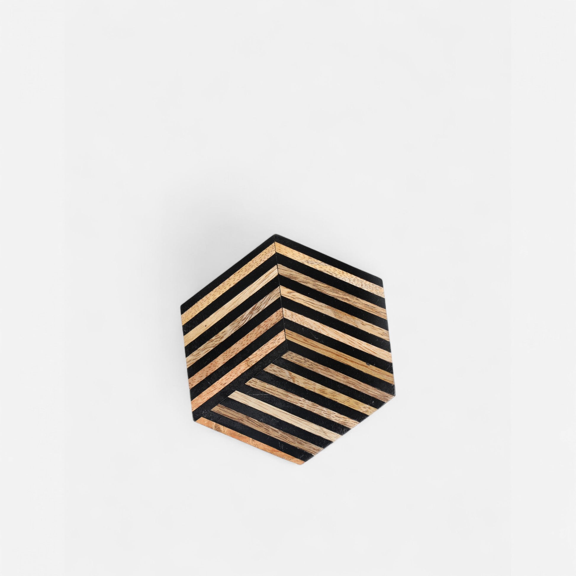 Striking and sculptural, these handcrafted coasters instantly dial up the style on any coffee table or bar cart. Made from natural wood with inlaid resin stripes, they offer a bold contrast that plays beautifully with light and shadow. The hexagonal shape adds an architectural edge, while the matte finish keeps things grounded and chic. Whether you're serving cocktails or just your morning brew, these coasters make a statement without saying a word.